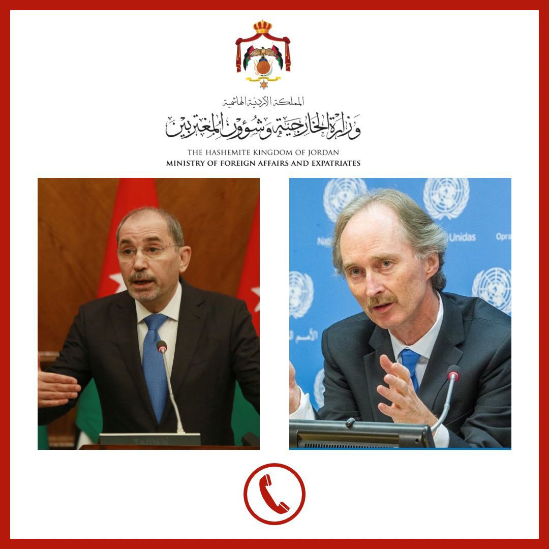 كما بحث الصفدي في اتصال هاتفي تطورات الأوضاع في سوريا مع المبعوث الخاص للأمين العام للأمم المتحدة لسوريا جير بيدرسون.