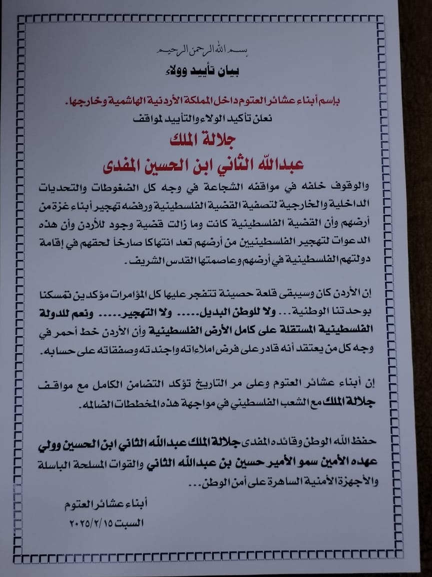 الرئيسية/عشيرة العتوم تقيم مهرجان خطابي تجدد من خلاله البيعة للملك عبدالله الثاني ابن الحسين المعظم حفظة الله ورعاه/IMG-20250215-WA0025 IMG-20250215-WA0025