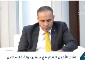 **لقاء مثمر بين أمين عام اتحاد الغرف السعودية وسفير دولة فلسطين بحضور رئيس مجلس الأعمال السعودي الفلسطيني الأستاذ أحمد الشغدلي