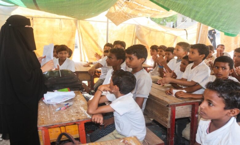 في فناء مدرسة حكومية بمدينة لحج قرب عدن، تُدرس المدرّسة اليمنية سعاد صالح قواعد اللغة العربية لأكثر من 100 تلميذ في خيمة مغطاة بأقمشة مهترئة، غالبيتهم بلا زيّ مدرسي أو كتب، في مشهد يبرز التحديات الكبيرة التي تواجه قطاع التعليم في اليمن. ورغم الظروف القاسية، يُعتبر هؤلاء التلاميذ محظوظين مقارنة بحوالي 4,5 ملايين طفل في سن التعليم ممن حرمتهم الحرب المستمرة منذ أكثر من عشر سنوات من الذهاب إلى المدارس، وفق منظمة اليونيسف.