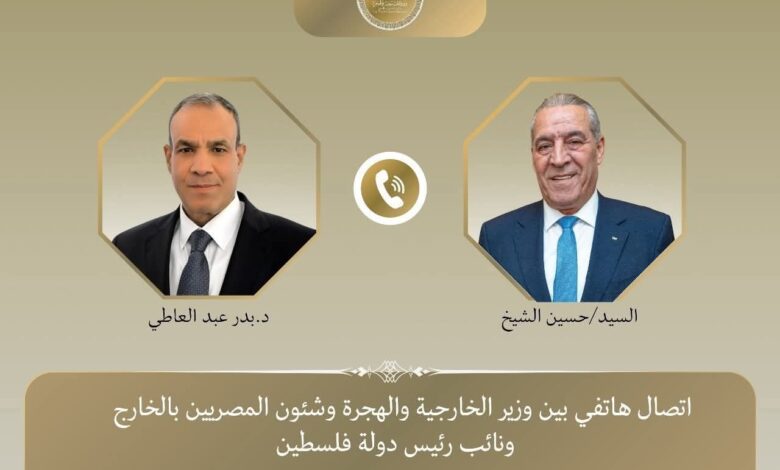 جاء في اتصال هاتفي اليوم السبت الموافق 15 نوفمبر 2025 بين د. بدر عبد العاطي وزير الخارجية المصري، والسيد حسين الشيخ نائب رئيس دولة فلسطين استمرار التنسيق حول تطورات الأوضاع في فلسطين وجهود تنفيذ اتفاق شرم الشيخ للسلام.