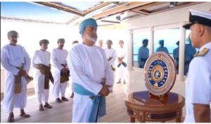 وبهذه المناسبة تفضل جلالة السلطان هيثم بن طارق سلطان عمان القائد الأعلى للقوات المسلحة العمانية بتقبل هدية تذكارية تشرف بتقديمها لجلالته اللواء الركن بحري قائد البحرية السلطانية العمانية.