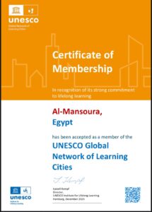 أعلن محافظ الدقهلية اللواء طارق مرزوق عن انضمام مدينة المنصورة رسمياً إلى الشبكة العالمية لمدن التعلم (GNLC) التابعة لليونسكو، وذلك في إطار تعزيز مبدأ التعلم مدى الحياة لتحقيق التنمية المستدامة وبناء مجتمع معرفي ديناميكي.