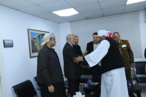 وكان في استقبال سعادته كل من سعادة *السيد موسى عبدالقادر دقالي*، القائم بأعمال السفارة الليبية لدى الأردن، وسعادة *الملحق العسكري الليبي* المعتمد في عمّان، وعدد من أعضاء السفارة.