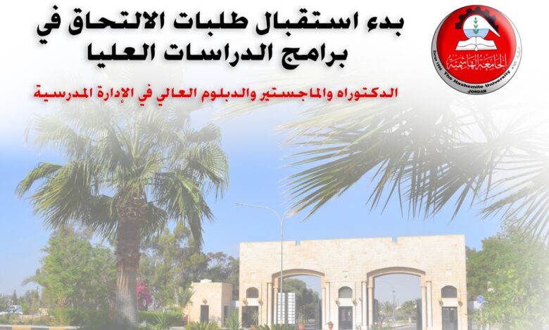 الجامعة الهاشمية تعلن بدء استقبال طلبات الدراسات العليا للفصل الثاني القادم
