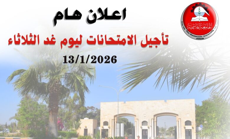 الجامعة الهاشمية تعلن تأجيل الامتحانات النهائية وتأخير الدوام بسبب الأحوال الجوية