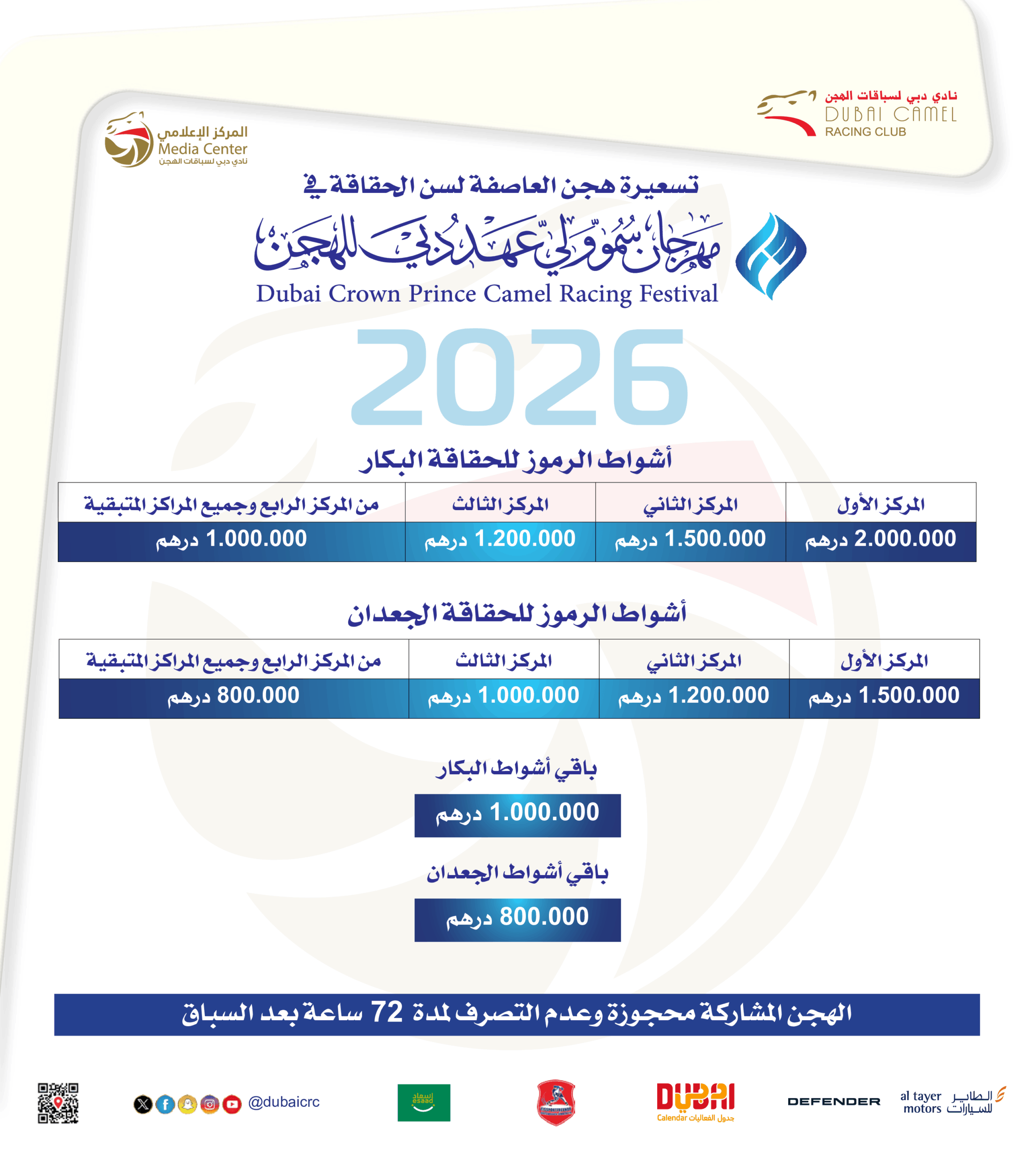 الرئيسية/عودة التحدي بانطلاقة منافسات أبناء القبائل في مهرجان سمو ولي عهد دبي/تسعيرة الحقاقة تسعيرة الحقاقة