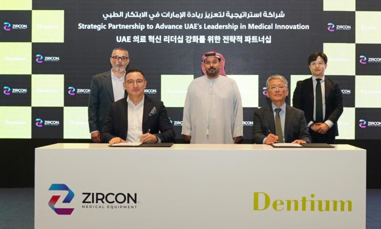 بدوره، قال الدكتور سونغ مين تشونغ، المؤسس والرئيس التنفيذي لشركة “دينتيوم” الكورية الجنوبية: “تجمع هذه الشراكة بين خبرة دينتيوم العالمية وريادة زيركون في أسواق الإمارات والمنطقة. ونسعى من خلال هذا التعاون إلى تعزيز تقنيات طب الأسنان الرقمي، وتوسيع نطاق الوصول إلى حلول زراعة أسنان موثوقة ومثبتة سريرياً، ودعم تطور الممارسات الطبية عبر الابتكار والتعليم والشراكات المستدامة”.