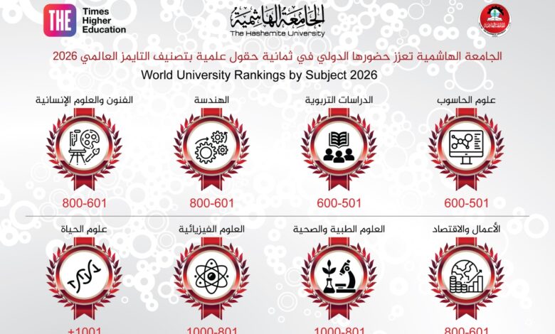 الجامعة الهاشمية تُعزِّزُ حضورها الدولي في تصنيف التايمز للتخصصات لعام 2026