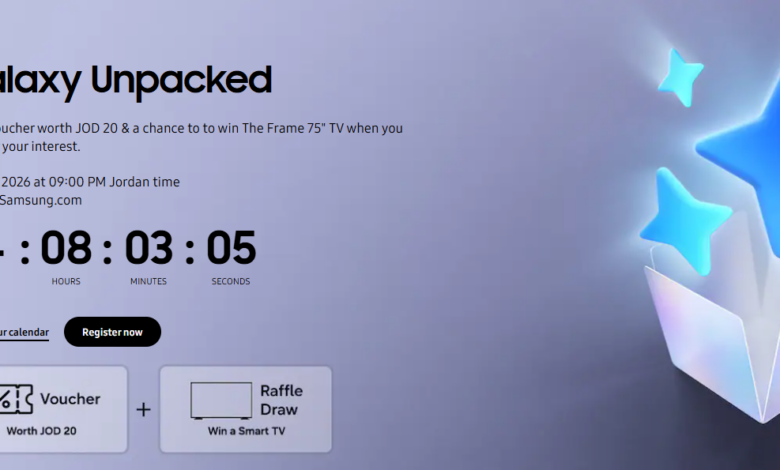 سجلوا الآن لحضور الحدث عبر الرابط: samsung.com/unpacked، والتعرّف على أحدث ابتكارات سامسونج في عالم الهواتف في المشاهد الحصرية ومقاطع الفيديو وغيرها من المزايا الحصرية قبل حدث Galaxy Unpacked 2026.