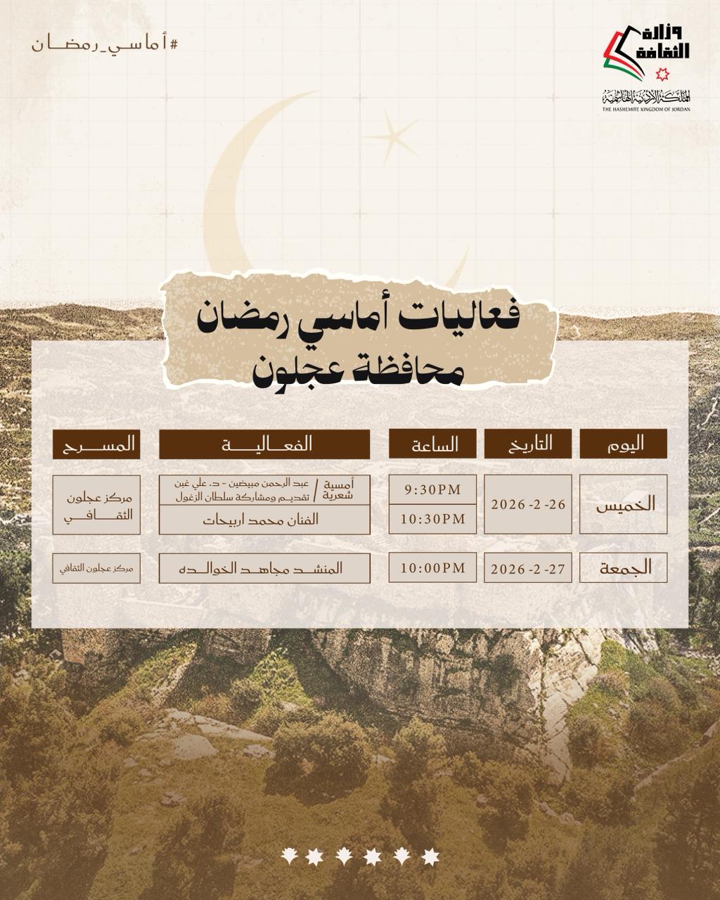 الرئيسية/وزارة الثقافة تواصل «أماسي رمضان» في عدد من المحافظات يومي الخميس والجمعة من كل أسبوع/IMG-20260224-WA0020 IMG-20260224-WA0020