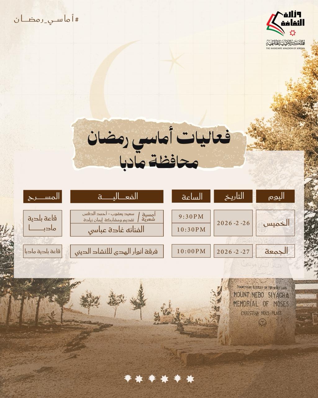 الرئيسية/وزارة الثقافة تواصل «أماسي رمضان» في عدد من المحافظات يومي الخميس والجمعة من كل أسبوع/IMG-20260224-WA0025 IMG-20260224-WA0025