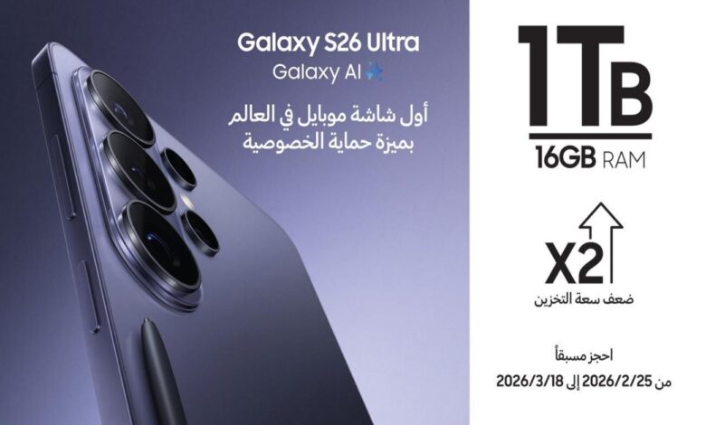 أما بالنسبة لمشتري كل من هاتف Galaxy S26 الذي يتسم بالأناقة وصغر الحجم مع أداء موثوق، وهاتف Galaxy S26+ الذي يتيمز بأدائه القوي الاستثنائي، فسيحصلون على سعة تخزين مضاعفة تصل إلى 516 جيجابايت.