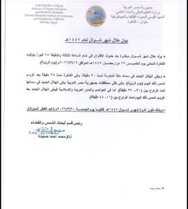 كما تجدر الإشارة إلى انه تستعد 7 دول عربية لاستطلاع هلال شهر شوال مساء يوم الأربعاء القادم، وذلك لحسم موعد عيد الفطر بشكل رسمي، وفي حال ثبوت رؤية الهلال، سيتم إعلان أول أيام عيد الفطر يوم الخميس بشكل رسمي مع تأكيد الجهات المختصة عبر بياناتها المعتمدة.