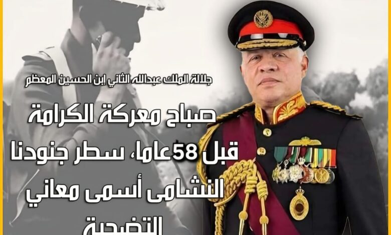وأشار إلى أن ذكرى الكرامة ليست مجرد محطة تاريخية، بل هي مدرسة وطنية متجددة، تُستلهم منها معاني الثبات والإرادة والتحدي، وتعزز الثقة بقدرة الوطن على تجاوز الصعاب وصناعة المستقبل، فهي تجسد وحدة الأردنيين خلف قيادتهم، وتعبّر عن تلاحم الجيش والشعب في مواجهة التحديات، وترسي دعائم الدولة القائمة على العدل والكرامة والسيادة.