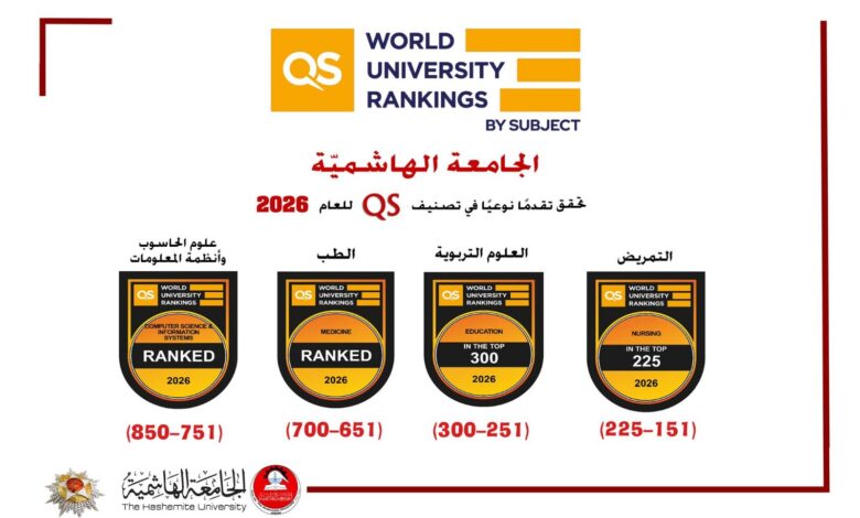 الجامعة الهاشميّة تواصل تقدّمها في تصنيف كيو إس QS للعام 2026 وتُحقِّقُ مراتب متقدمة في العديد من التخصصات