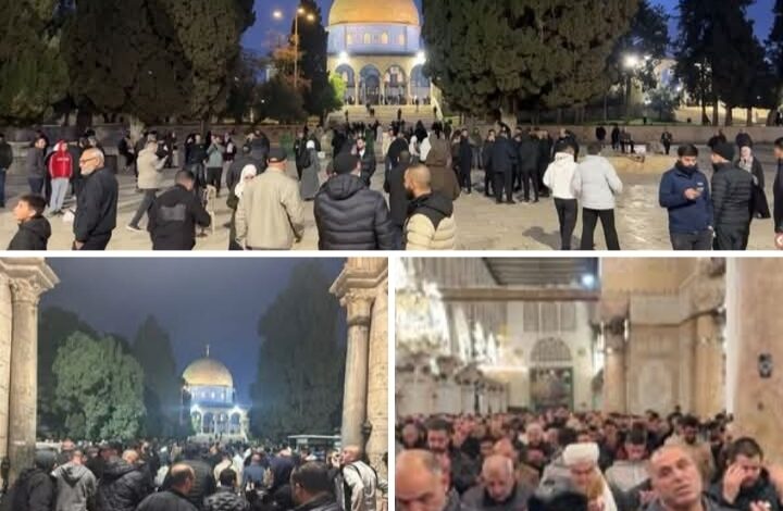 وقد أدى جموع من المصلين صلاة الفجر داخل المسجد الأقصى ..